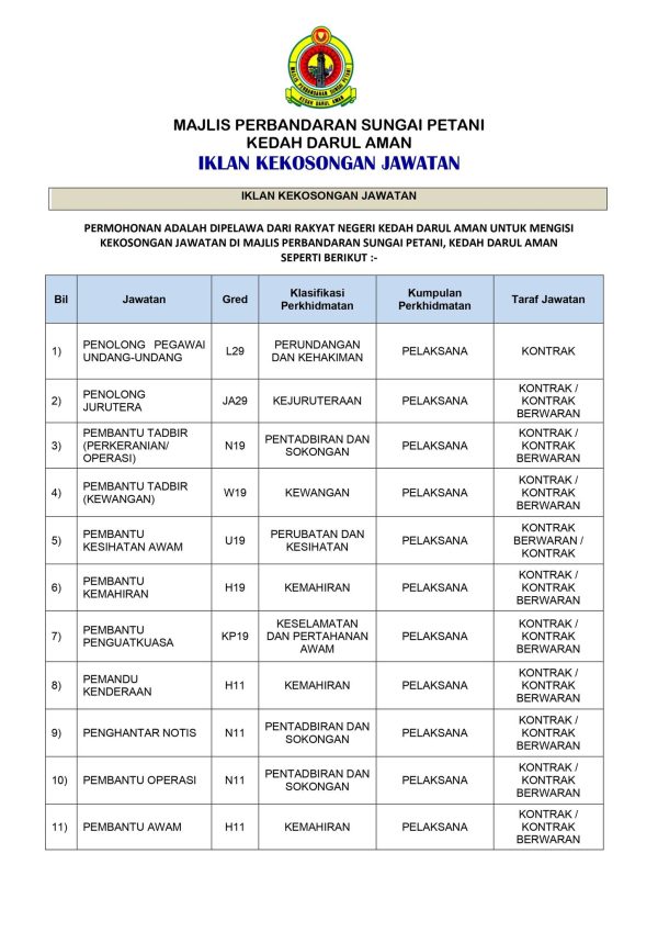 Iklan Jawatan Kosong Majlis Perbandaran Sungai Petani Like serta Ikut Facebook Kami, follow Chanel WhatsApp Jawatan Kosong & Telegram Portal SPA9 untuk capaian pantas kekosongan jawatan daripada kami sekarang.