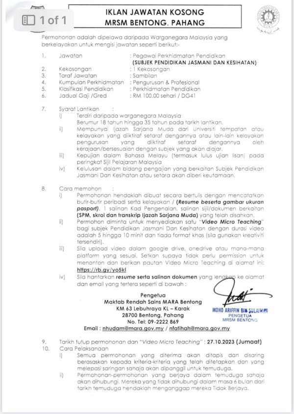 Iklan Jawatan Kosong Maktab Sains Rendah MARA (MRSM) Bentong Like serta Ikut Facebook Kami, follow Chanel WhatsApp Jawatan Kosong & Telegram Portal SPA9 untuk capaian pantas kekosongan jawatan daripada kami sekarang.