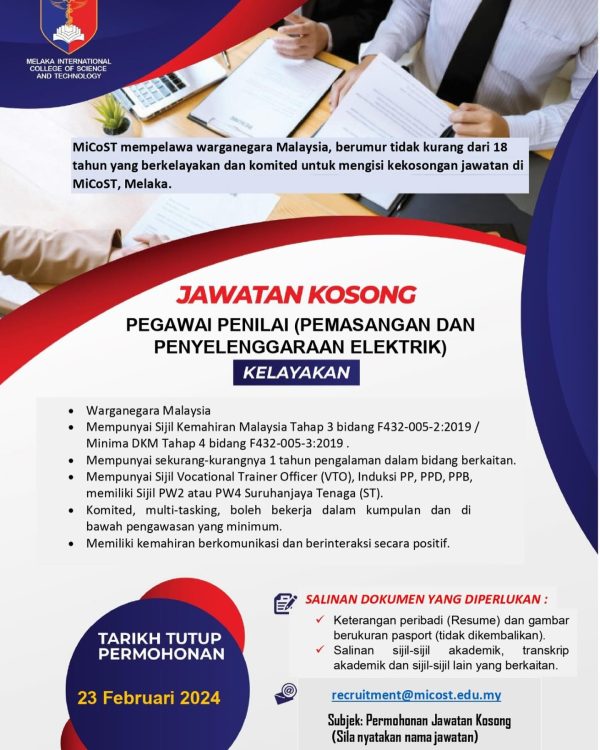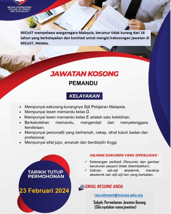 Iklan Jawatan Kosong Melaka International College Of Science And Technology (MiCoST)