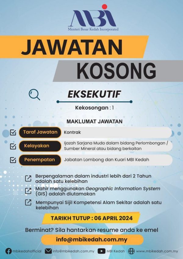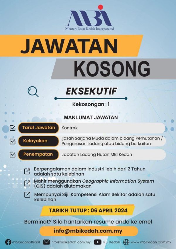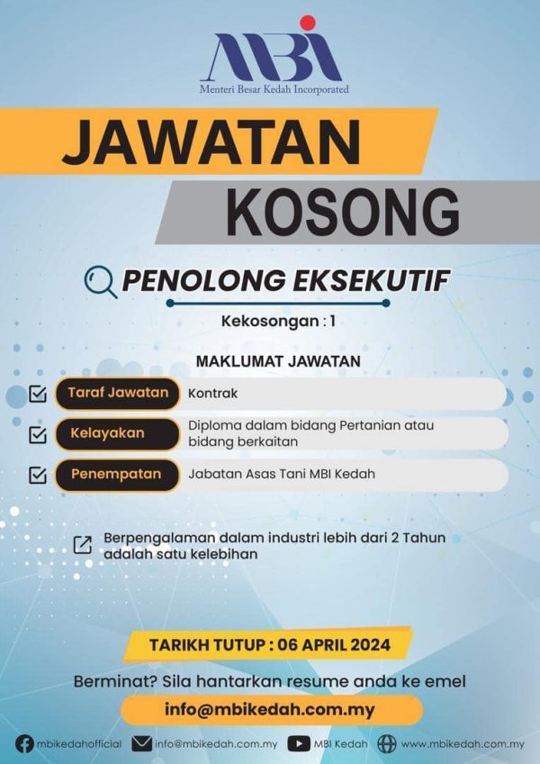 Iklan Jawatan Kosong Menteri Besar Kedah Incorporated Like serta Ikut Facebook Kami, follow Chanel WhatsApp Jawatan Kosong & Telegram Portal SPA9 untuk capaian pantas kekosongan jawatan daripada kami sekarang.