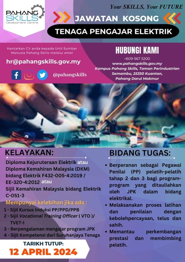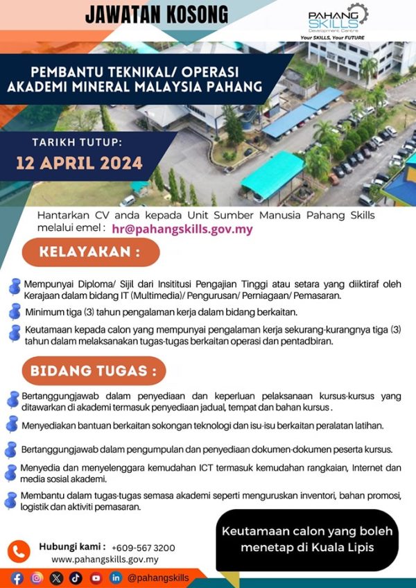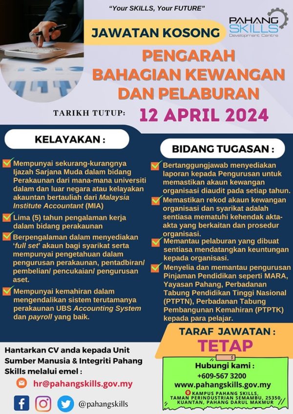 Iklan Jawatan Kosong Pahang Skills Development Centre Like serta Ikut Facebook Kami, follow Chanel WhatsApp Jawatan Kosong & Telegram Portal SPA9 untuk capaian pantas kekosongan jawatan daripada kami sekarang.