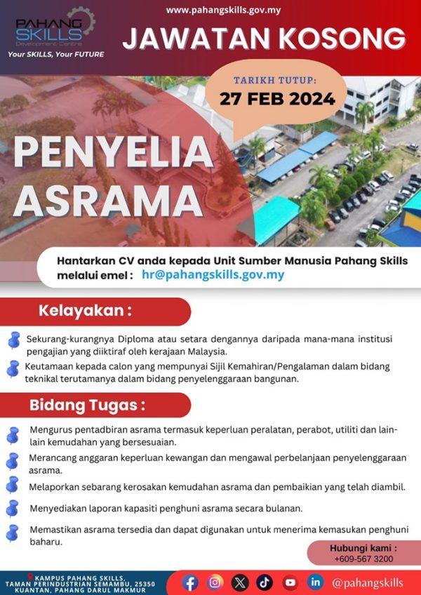 Iklan Jawatan Kosong Pahang Skills Development Centre Like serta Ikut Facebook Kami, follow Chanel WhatsApp Jawatan Kosong & Telegram Portal SPA9 untuk capaian pantas kekosongan jawatan daripada kami sekarang.