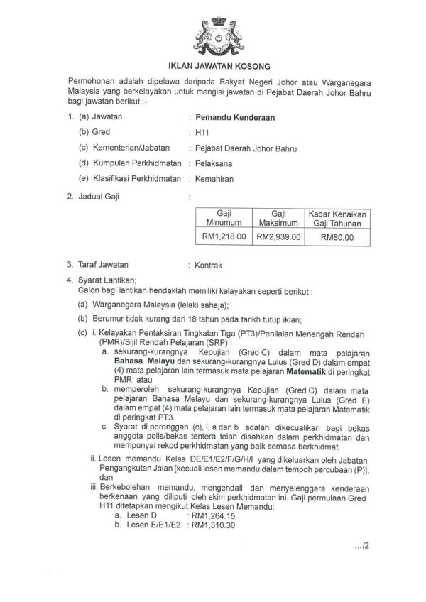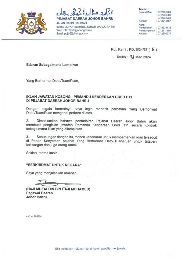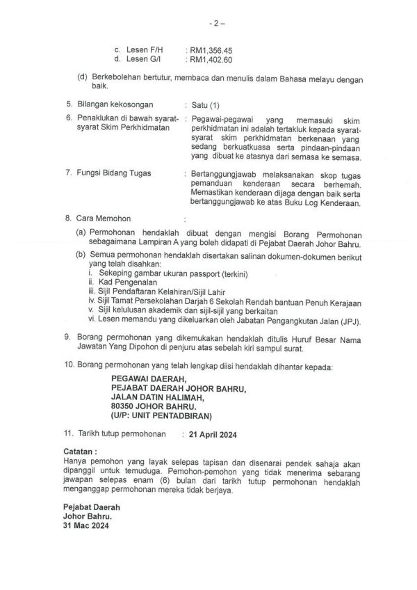 Iklan Jawatan Kosong Pejabat Daerah Johor Bahru Klik Jawatan Disini Like serta Ikut Facebook Kami, follow Chanel WhatsApp Jawatan Kosong & Telegram Portal SPA9 untuk capaian pantas kekosongan jawatan daripada kami sekarang.