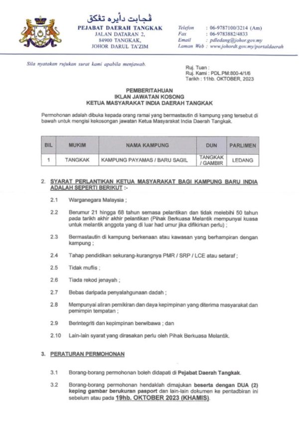 Iklan Jawatan Kosong Pejabat Daerah Tangkak Like serta Ikut Facebook Kami, follow Chanel WhatsApp Jawatan Kosong & Telegram Portal SPA9 untuk capaian pantas kekosongan jawatan daripada kami sekarang.