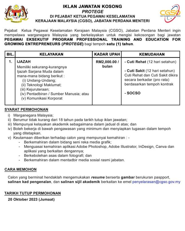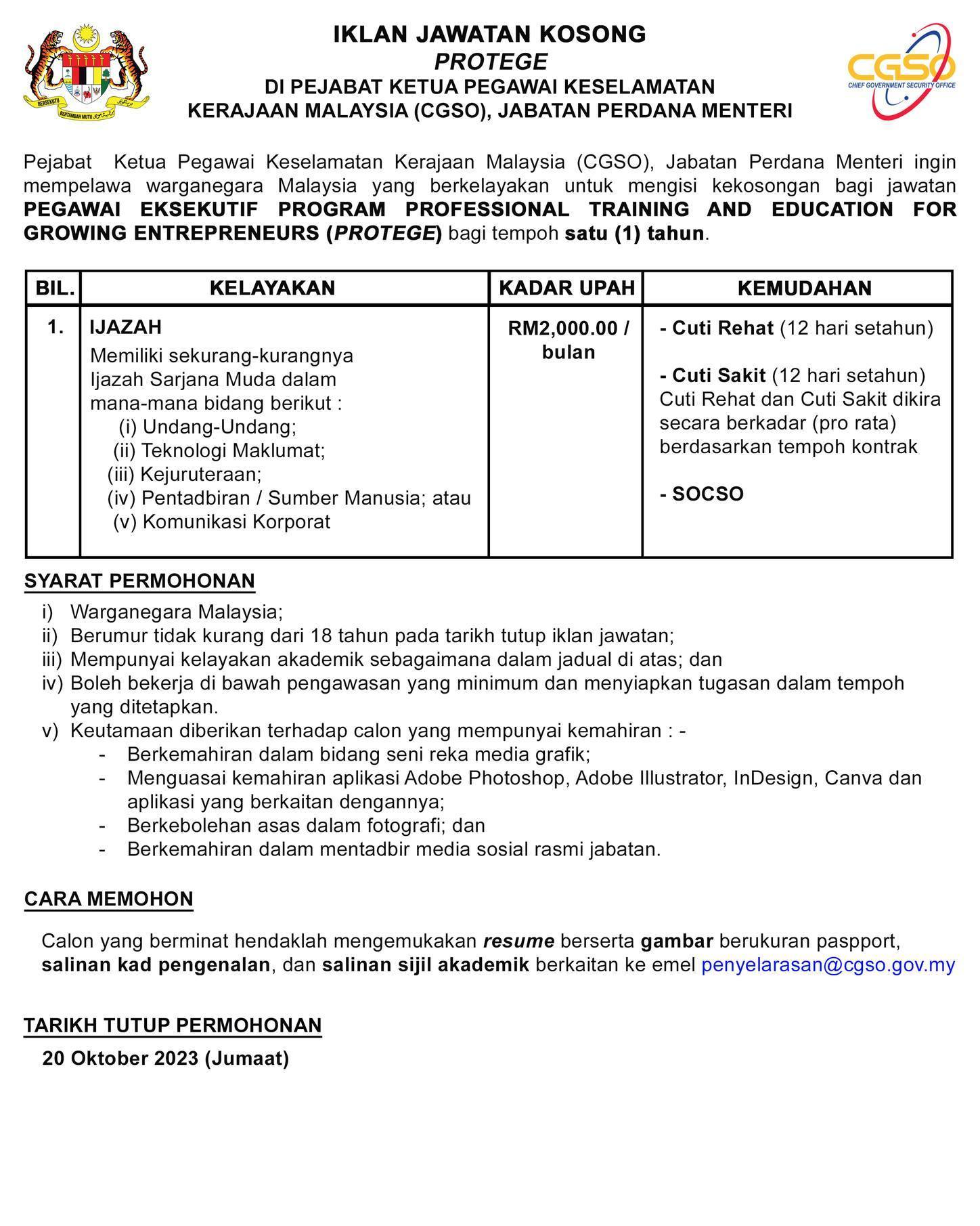 Iklan Jawatan Kosong Pejabat Ketua Pegawai Keselamatan Kerajaan Malaysia Like serta Ikut Facebook Kami, follow Chanel WhatsApp Jawatan Kosong & Telegram Portal SPA9 untuk capaian pantas kekosongan jawatan daripada kami sekarang.