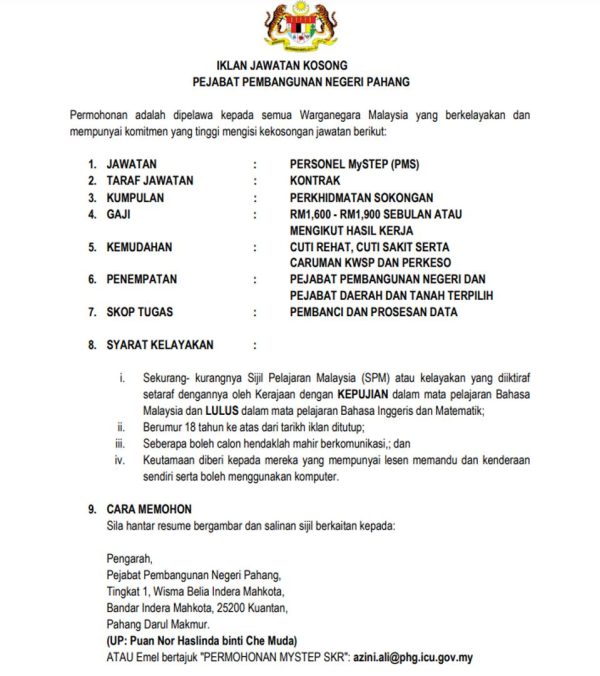 Iklan Jawatan Kosong Pejabat Pembangunan Negeri Pahang Like serta Ikut Facebook Kami, follow Chanel WhatsApp Jawatan Kosong & Telegram Portal SPA9 untuk capaian pantas kekosongan jawatan daripada kami sekarang.