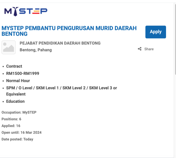 Iklan Jawatan Kosong Pejabat Pendidikan Daerah Bentong