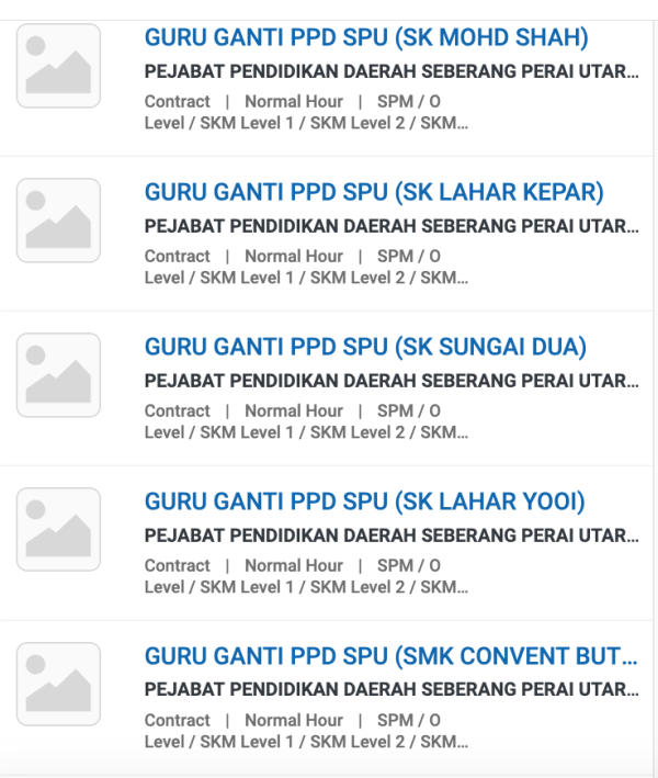 Permohonan jawatan ini boleh dibuat melalui Portal MyFutureJobs. Sila ke Portal MyFutureJobs dan Masukkan Kata Carian yang ingin dicari “PEJABAT PENDIDIKAN DAERAH SEBERANG PERAI UTARA” di bahagian carian untuk memohon jawatan yang diiklankan.