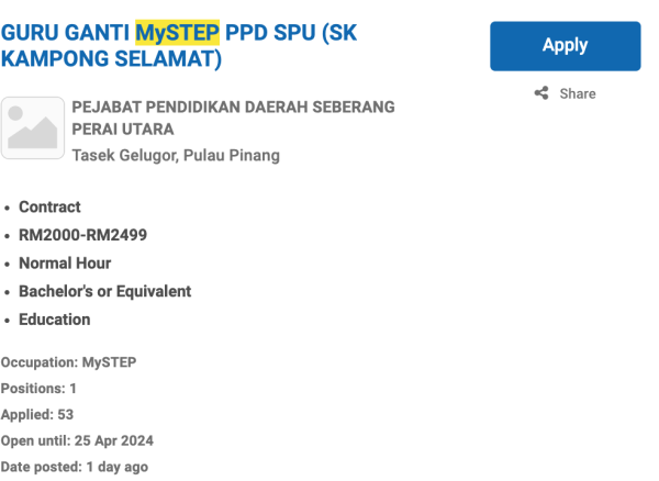 Iklan Jawatan Kosong Pejabat Pendidikan Daerah Seberang Perai Utara ~ Mystep