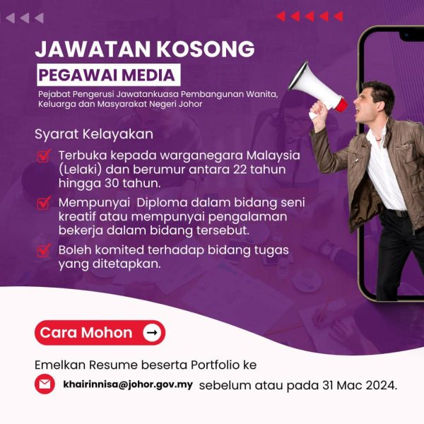 Iklan Jawatan Kosong Pejabat Pengerusi Jawatankuasa Pembangunan Wanita, Keluarga Dan Masyarakat Negeri Johor