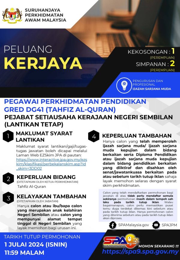 Iklan Jawatan Kosong Pejabat Setiausaha Kerajaan Negeri Sembilan Like serta Ikut Facebook Kami, follow Chanel WhatsApp Jawatan Kosong & Telegram Portal SPA9 untuk capaian pantas kekosongan jawatan daripada kami sekarang. Klik Jawatan Disini