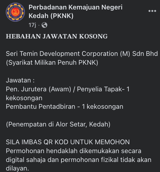 Iklan Jawatan Kosong Perbadanan Kemajuan Negeri Kedah Like serta Ikut Facebook Kami, follow Chanel WhatsApp Jawatan Kosong & Telegram Portal SPA9 untuk capaian pantas kekosongan jawatan daripada kami sekarang. Klik Jawatan Disini
