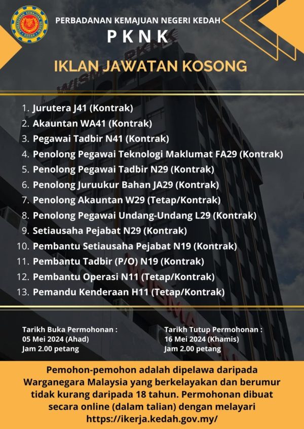 Iklan Jawatan Kosong Perbadanan Kemajuan Negeri Kedah Like serta Ikut Facebook Kami, follow Chanel WhatsApp Jawatan Kosong & Telegram Portal SPA9 untuk capaian pantas kekosongan jawatan daripada kami sekarang. Klik Jawatan Disini