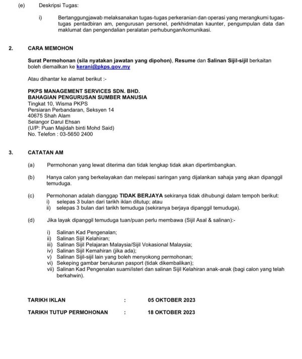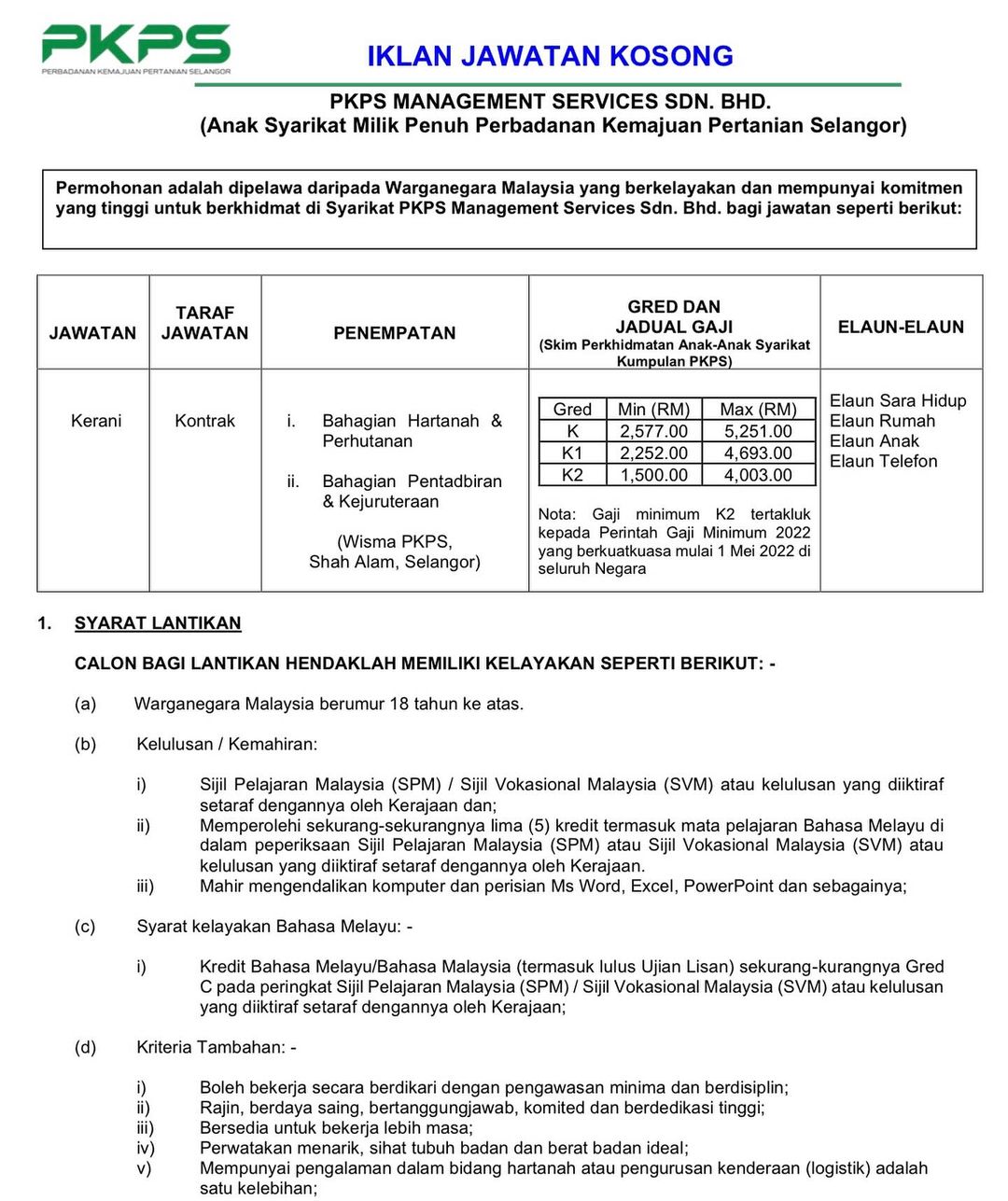 Iklan Jawatan Kosong Perbadanan Kemajuan Pertanian Selangor (PKPS) Like serta Ikut Facebook Kami, follow Chanel WhatsApp Jawatan Kosong & Telegram Portal SPA9 untuk capaian pantas kekosongan jawatan daripada kami sekarang.
