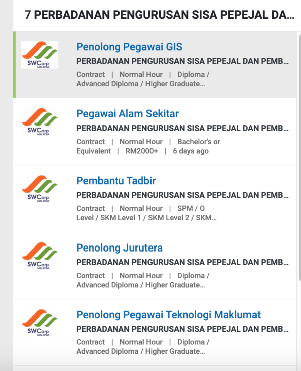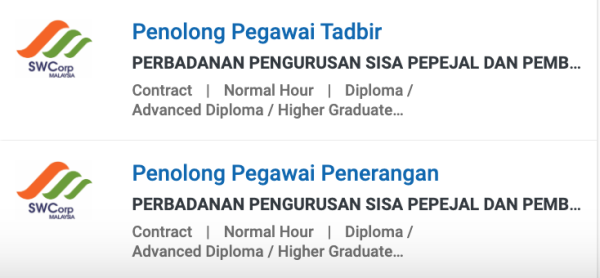 Iklan Jawatan Kosong Perbadanan Pengurusan Sisa Pepejal & Pembersihan Awam (SWCorp)