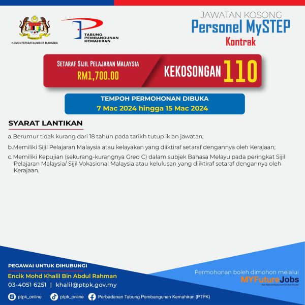 Iklan Jawatan Kosong Perbadanan Tabung Pembangunan Kemahiran (PTPK) Like serta Ikut Facebook Kami, follow Chanel WhatsApp Jawatan Kosong & Telegram Portal SPA9 untuk capaian pantas kekosongan jawatan daripada kami sekarang.