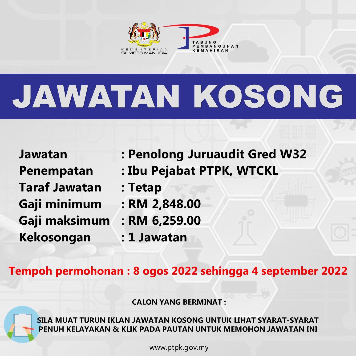 Iklan Jawatan Perbadanan Tabung Pembangunan Kemahiran (PTPK) Like serta Ikut Facebook Kami, follow Chanel WhatsApp Jawatan Kosong & Telegram Portal SPA9 untuk capaian pantas kekosongan jawatan daripada kami sekarang. BORANG PERMOHONAN