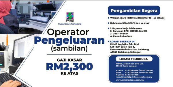 Iklan Jawatan Kosong Percetakan Nasional Malaysia Berhad (PNMB) Like serta Ikut Facebook Kami, follow Chanel WhatsApp Jawatan Kosong & Telegram Portal SPA9 untuk capaian pantas kekosongan jawatan daripada kami sekarang.