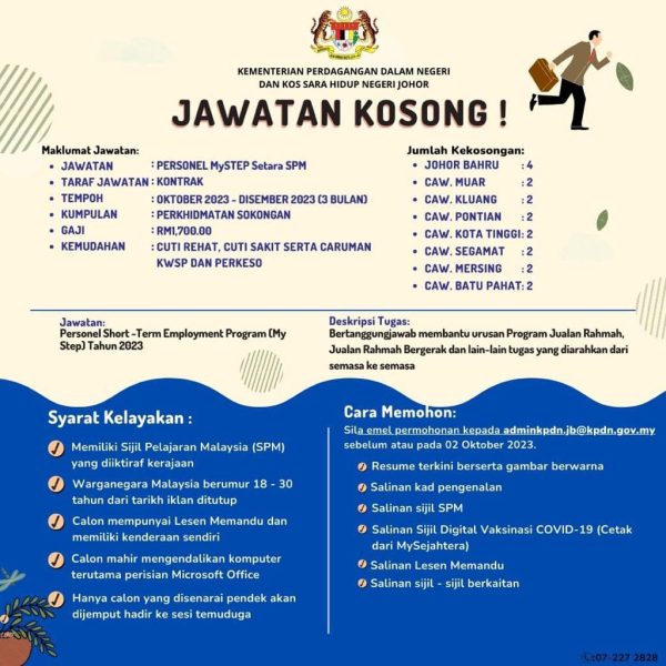 Iklan Jawatan Kosong Personel Mystep Di Pejabat KPDN Johor Like serta Ikut Facebook Kami, follow Chanel WhatsApp Jawatan Kosong & Telegram Portal SPA9 untuk capaian pantas kekosongan jawatan daripada kami sekarang.