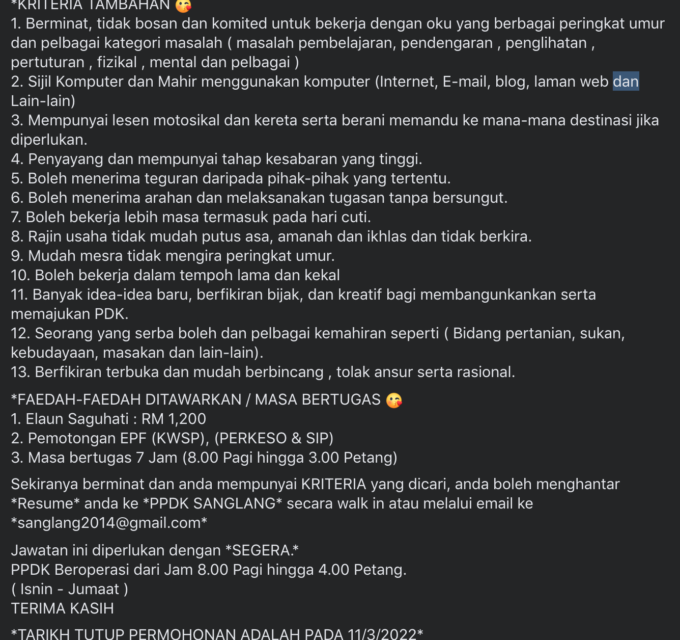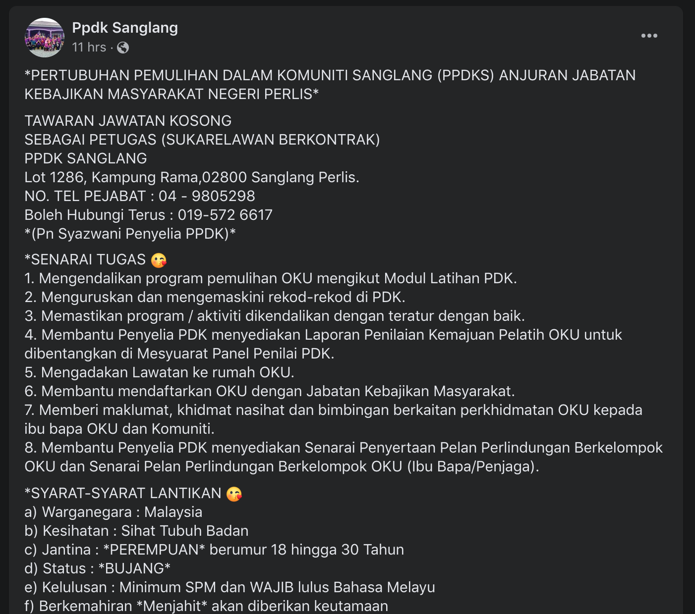 Iklan Jawatan Kosong Pertubuhan Pemulihan Dalam Komuniti (PPDK) Sanglang Like serta Ikut Facebook Kami, follow Chanel WhatsApp Jawatan Kosong & Telegram Portal SPA9 untuk capaian pantas kekosongan jawatan daripada kami sekarang.