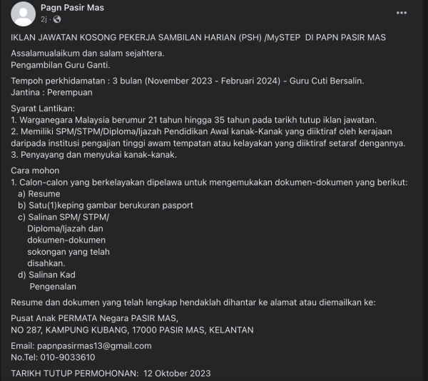 Iklan Jawatan Kosong Pusat Anak Permata Negara Like serta Ikut Facebook Kami, follow Chanel WhatsApp Jawatan Kosong & Telegram Portal SPA9 untuk capaian pantas kekosongan jawatan daripada kami sekarang.