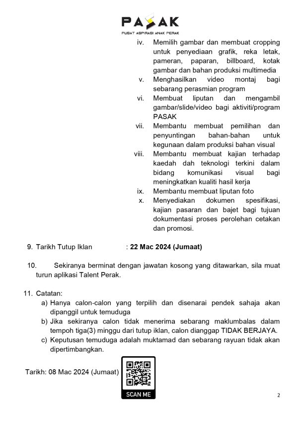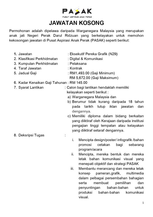 Iklan Jawatan Kosong Pusat Aspirasi Anak Perak (PASAK) Like serta Ikut Facebook Kami, follow Chanel WhatsApp Jawatan Kosong & Telegram Portal SPA9 untuk capaian pantas kekosongan jawatan daripada kami sekarang.