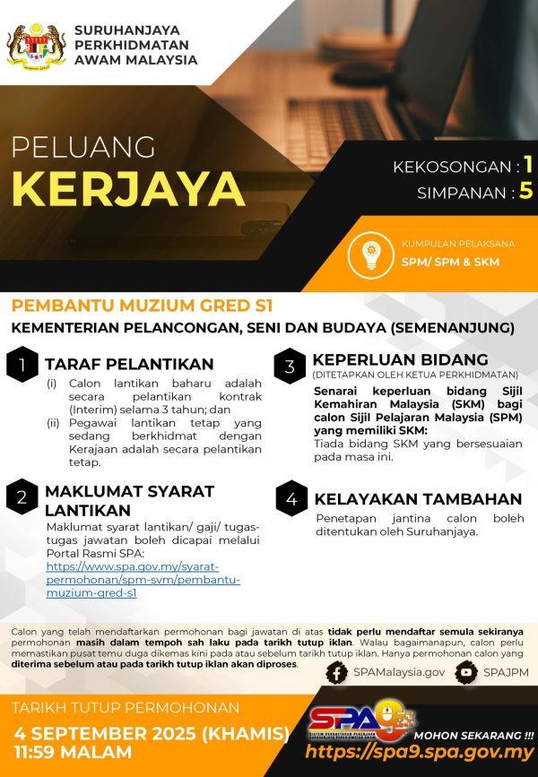 Iklan Jawatan Kosong Terbaru Kementerian Pelancongan, Seni dan Budaya (MOTAC) Like serta Ikut Facebook Kami, follow Chanel WhatsApp Jawatan Kosong & Telegram Portal SPA9 untuk capaian pantas kekosongan jawatan daripada kami sekarang. Klik Iklan Disini