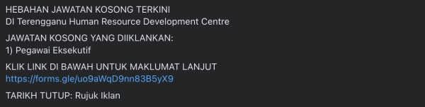 Iklan Jawatan Kosong Terengganu Human Resource Development Centre Like serta Ikut Facebook Kami, follow Chanel WhatsApp Jawatan Kosong & Telegram Portal SPA9 untuk capaian pantas kekosongan jawatan daripada kami sekarang. Klik Jawatan Disini