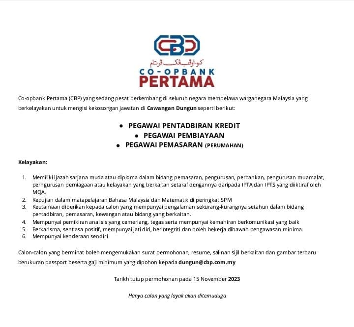 Iklan Jawatan Kosong Terkini Co-opbank Pertama Malaysia Berhad Like serta Ikut Facebook Kami, follow Chanel WhatsApp Jawatan Kosong & Telegram Portal SPA9 untuk capaian pantas kekosongan jawatan daripada kami sekarang.