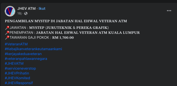 Iklan Jawatan Kosong Terkini Jabatan Hal Ehwal Veteran ATM
