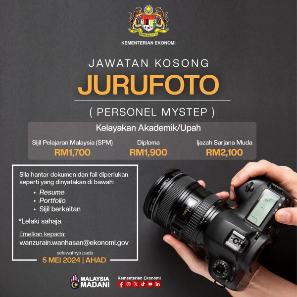 Iklan Jawatan Kosong Terkini Kementerian Ekonomi – Jurufoto Like serta Ikut Facebook Kami, follow Chanel WhatsApp Jawatan Kosong & Telegram Portal SPA9 untuk capaian pantas kekosongan jawatan daripada kami sekarang.