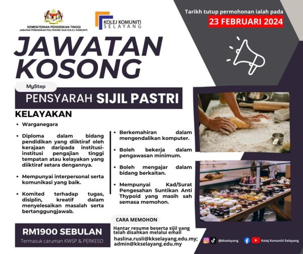 Iklan Jawatan Kosong Terkini Kolej Komuniti Selayang Like serta Ikut Facebook Kami, follow Chanel WhatsApp Jawatan Kosong & Telegram Portal SPA9 untuk capaian pantas kekosongan jawatan daripada kami sekarang.