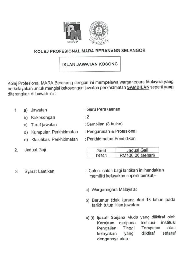 Iklan Jawatan Kosong Terkini Kolej Profesional MARA Like serta Ikut Facebook Kami, follow Chanel WhatsApp Jawatan Kosong & Telegram Portal SPA9 untuk capaian pantas kekosongan jawatan daripada kami sekarang.