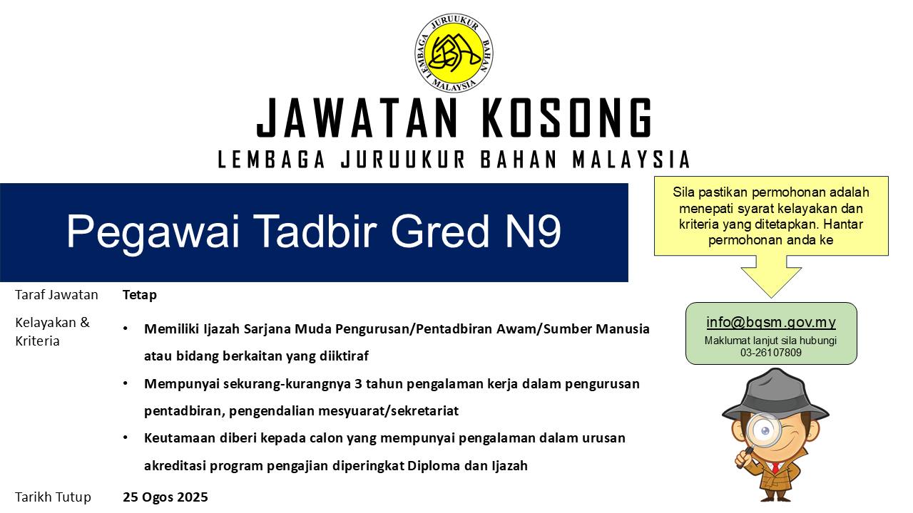 Iklan Jawatan Kosong Terkini Lembaga Juruukur Bahan Malaysia Like serta Ikut Facebook Kami, follow Chanel WhatsApp Jawatan Kosong & Telegram Portal SPA9 untuk capaian pantas kekosongan jawatan daripada kami sekarang. Klik Iklan Disini