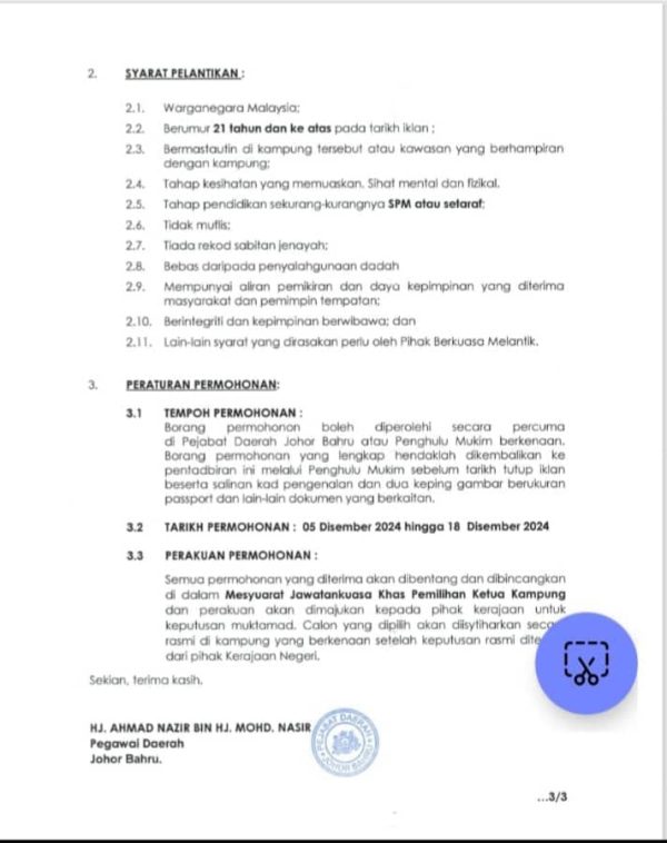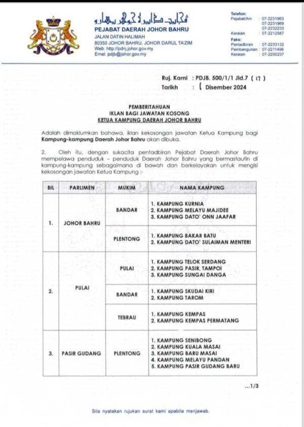 Iklan Jawatan Kosong Terkini Pejabat Daerah Johor Bahru Like serta Ikut Facebook Kami, follow Chanel WhatsApp Jawatan Kosong & Telegram Portal SPA9 untuk capaian pantas kekosongan jawatan daripada kami sekarang.