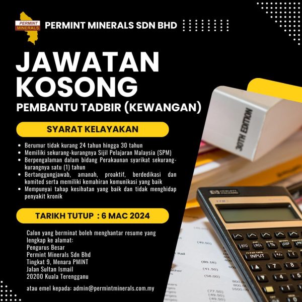 Iklan Jawatan Kosong Terkini Permint Minerals Sdn Bhd Like serta Ikut Facebook Kami, follow Chanel WhatsApp Jawatan Kosong & Telegram Portal SPA9 untuk capaian pantas kekosongan jawatan daripada kami sekarang.