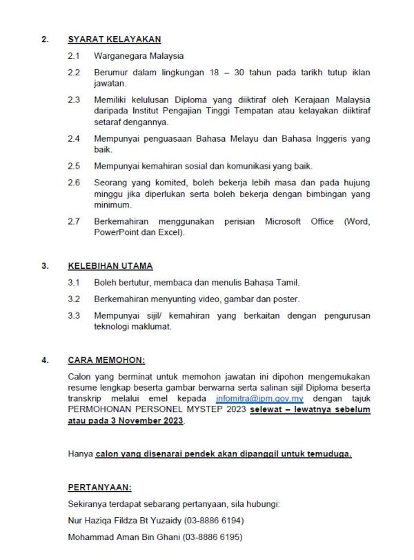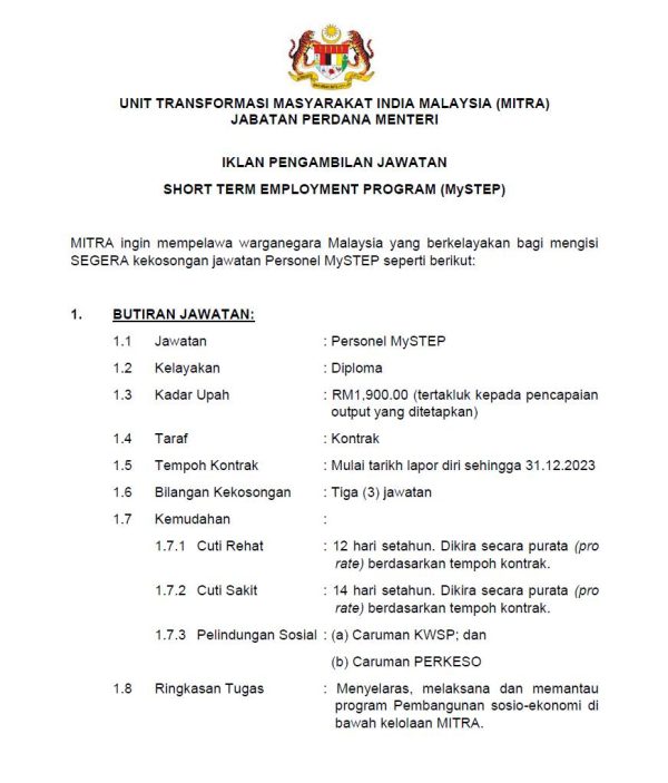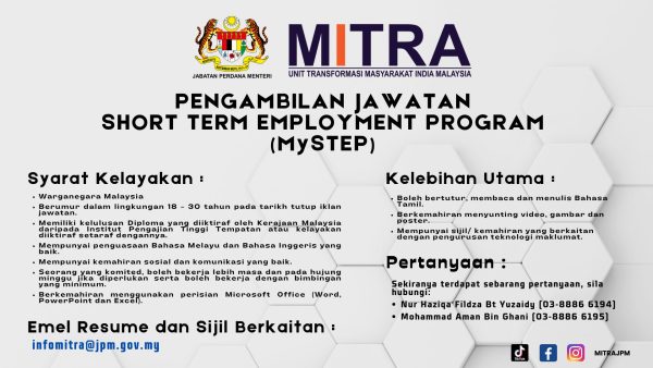 Iklan Jawatan Kosong Unit Transformasi Masyarakat India Malaysia (MITRA) ~ Mystep Like serta Ikut Facebook Kami, follow Chanel WhatsApp Jawatan Kosong & Telegram Portal SPA9 untuk capaian pantas kekosongan jawatan daripada kami sekarang.