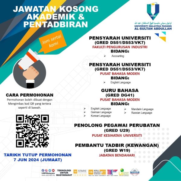 Iklan Jawatan Kosong Universiti Malaysia Pahang (UMP) Like serta Ikut Facebook Kami, follow Chanel WhatsApp Jawatan Kosong & Telegram Portal SPA9 untuk capaian pantas kekosongan jawatan daripada kami sekarang. Klik Jawatan Disini