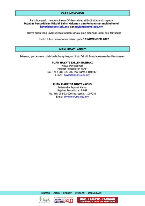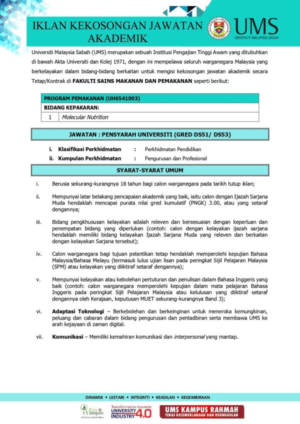 Iklan Jawatan Kosong Universiti Malaysia Sabah (UMS) Like serta Ikut Facebook Kami, follow Chanel WhatsApp Jawatan Kosong & Telegram Portal SPA9 untuk capaian pantas kekosongan jawatan daripada kami sekarang.