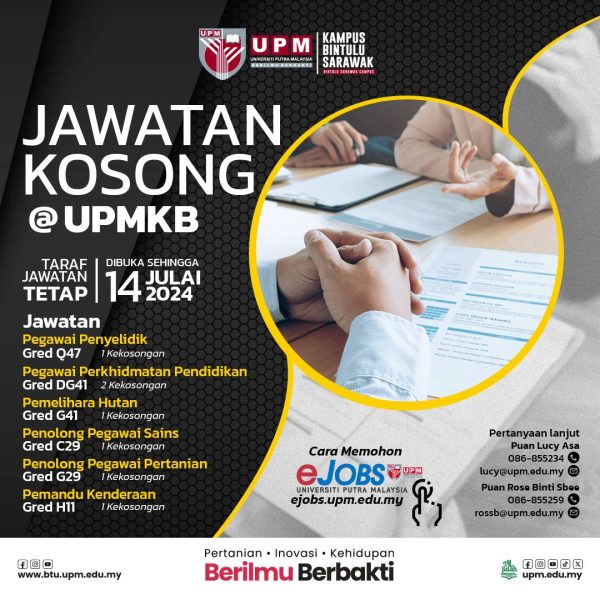 Iklan Jawatan Kosong Universiti Putra Malaysia (UPM) Kampus Bintulu Like serta Ikut Facebook Kami, follow Chanel WhatsApp Jawatan Kosong & Telegram Portal SPA9 untuk capaian pantas kekosongan jawatan daripada kami sekarang. Klik Jawatan Disini