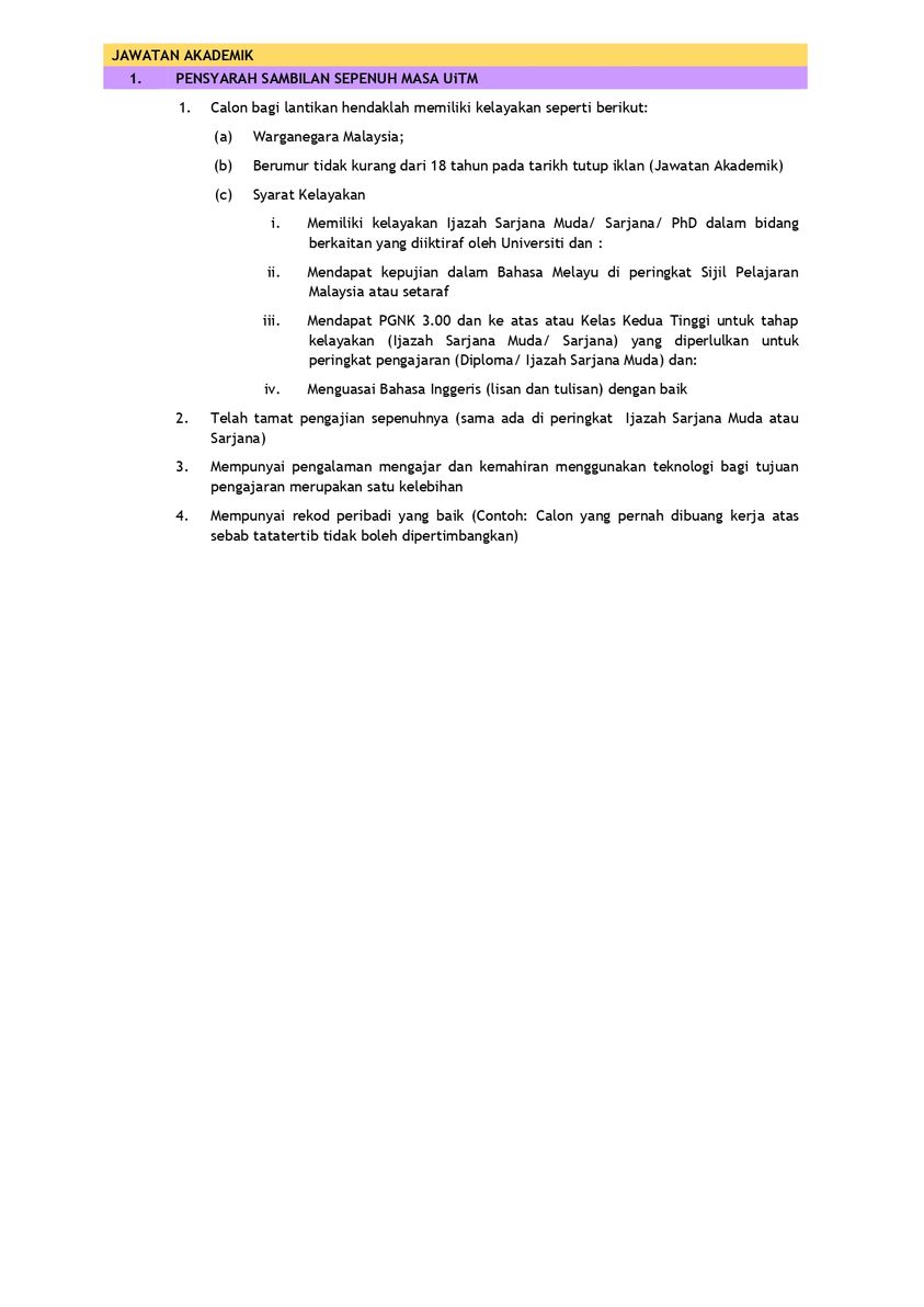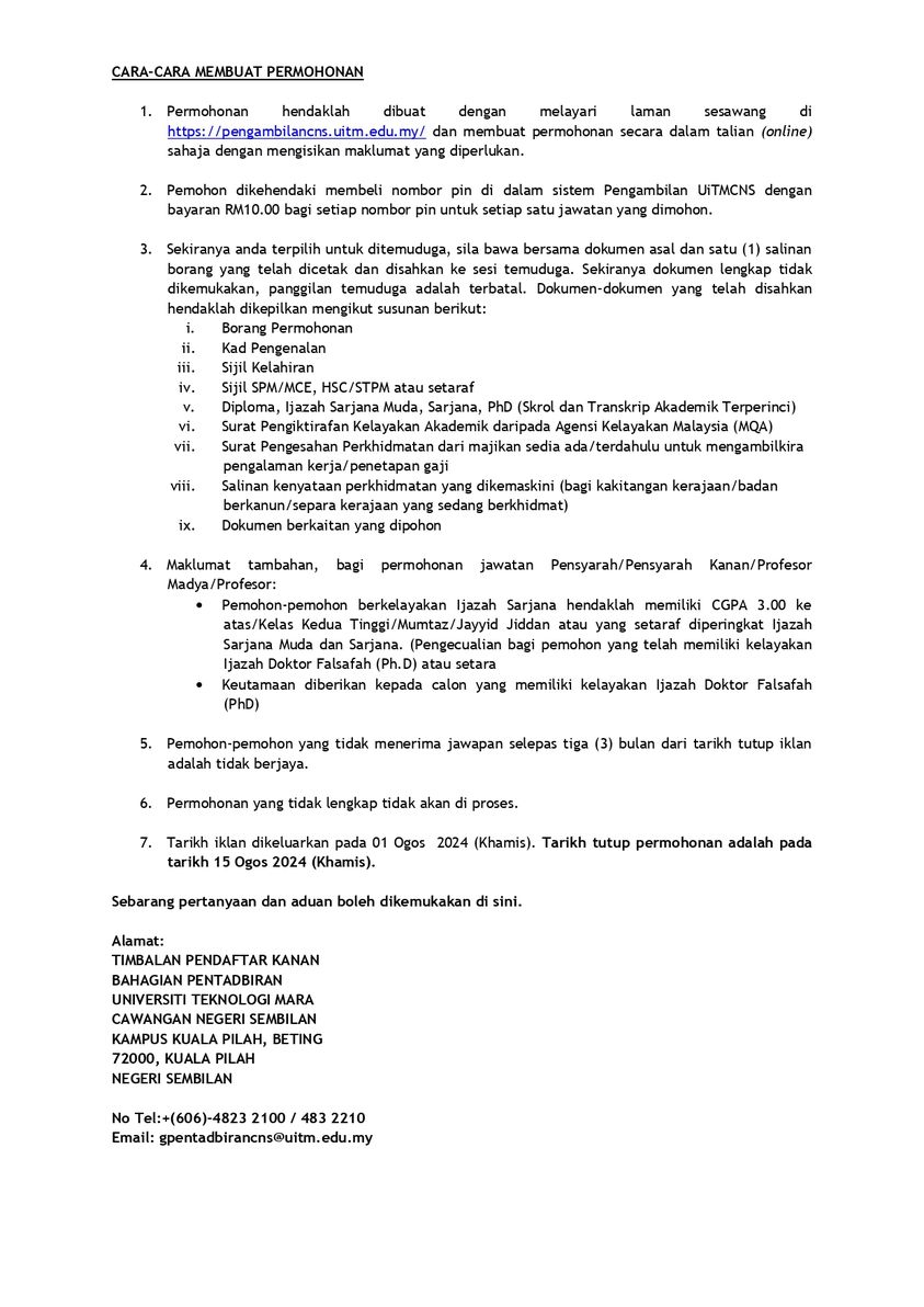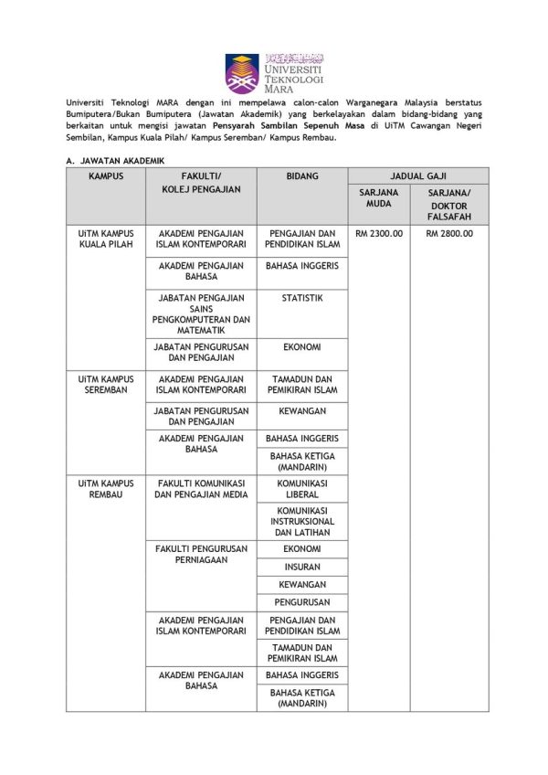Iklan Jawatan Kosong Universiti Teknologi MARA (UiTM) Negeri Sembilan ~ Pensyarah Like serta Ikut Facebook Kami, follow Chanel WhatsApp Jawatan Kosong & Telegram Portal SPA9 untuk capaian pantas kekosongan jawatan daripada kami sekarang. Klik Iklan Disini