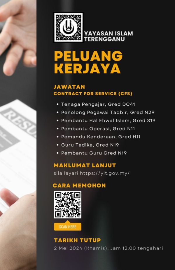 Iklan Jawatan Kosong Yayasan Islam Terengganu Klik Jawatan Disini Like serta Ikut Facebook Kami, follow Chanel WhatsApp Jawatan Kosong & Telegram Portal SPA9 untuk capaian pantas kekosongan jawatan daripada kami sekarang.