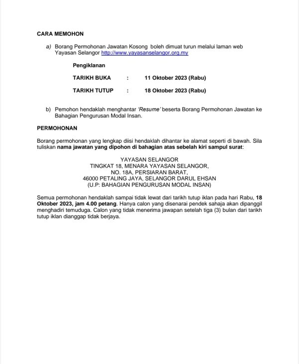 Iklan Jawatan Kosong Yayasan Selangor Like serta Ikut Facebook Kami, follow Chanel WhatsApp Jawatan Kosong & Telegram Portal SPA9 untuk capaian pantas kekosongan jawatan daripada kami sekarang.