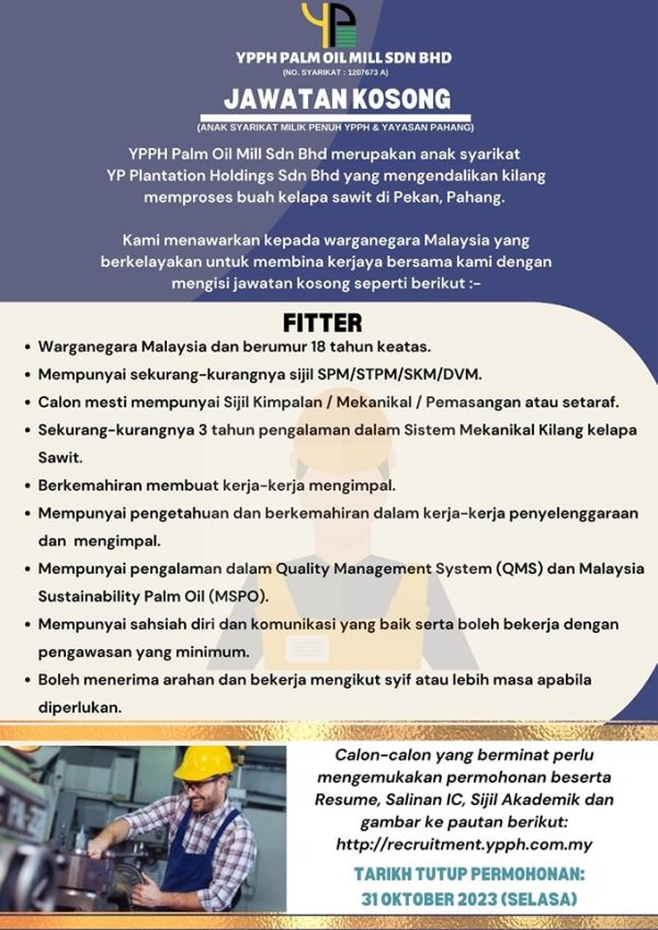 IKlan Jawatan Kosong YP Plantation Holdings Sdn Bhd Like serta Ikut Facebook Kami, follow Chanel WhatsApp Jawatan Kosong & Telegram Portal SPA9 untuk capaian pantas kekosongan jawatan daripada kami sekarang. Klik Jawatan Disini