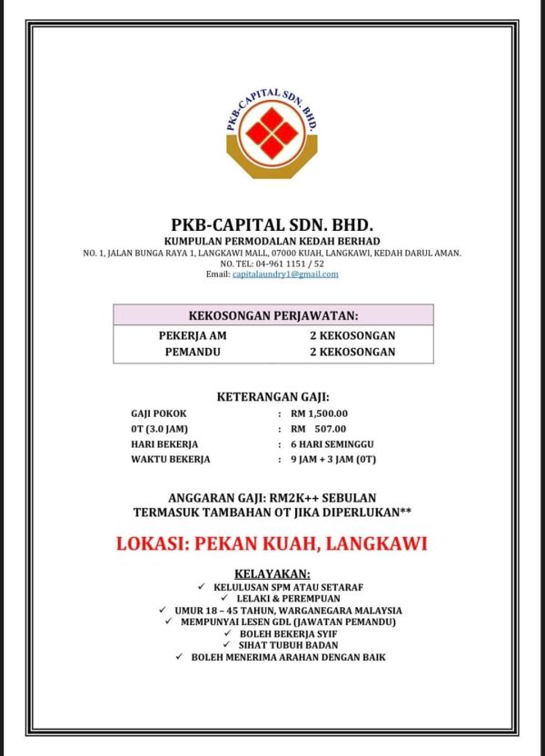 IKlan Jawatan Kumpulan Permodalan Kedah Berhad (KPKB) Like serta Ikut Facebook Kami, follow Chanel WhatsApp Jawatan Kosong & Telegram Portal SPA9 untuk capaian pantas kekosongan jawatan daripada kami sekarang.