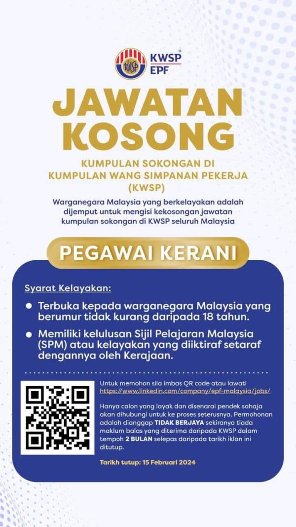 Iklan Jawatan Kumpulan Wang Simpanan Pekerja (KWSP) Like serta Ikut Facebook Kami, follow Chanel WhatsApp Jawatan Kosong & Telegram Portal SPA9 untuk capaian pantas kekosongan jawatan daripada kami sekarang.