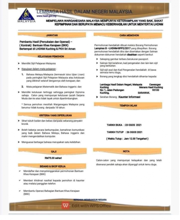 Iklan Jawatan Lembaga Hasil Dalam Negeri Malaysia (LHDNM) Like serta Ikut Facebook Kami, follow Chanel WhatsApp Jawatan Kosong & Telegram Portal SPA9 untuk capaian pantas kekosongan jawatan daripada kami sekarang.