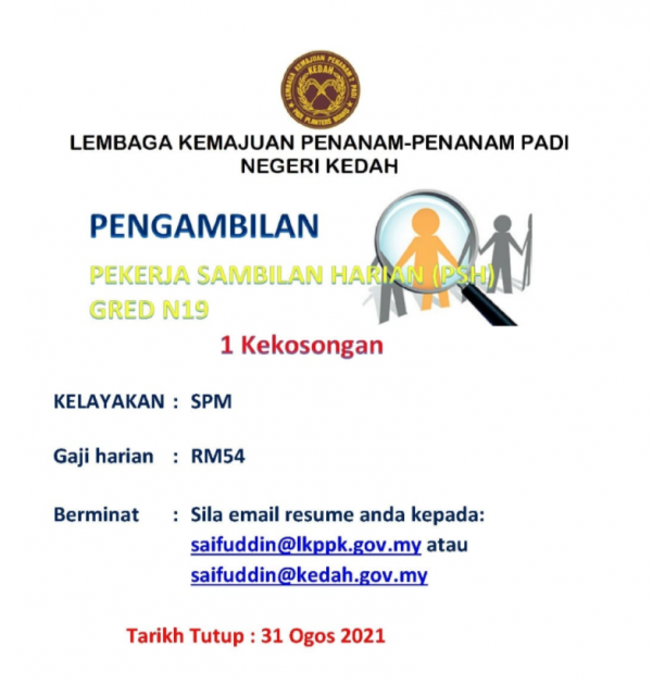 Iklan Jawatan Lembaga Kemajuan Penanam – Penanam Padi Kedah Like serta Ikut Facebook Kami, follow Chanel WhatsApp Jawatan Kosong & Telegram Portal SPA9 untuk capaian pantas kekosongan jawatan daripada kami sekarang.