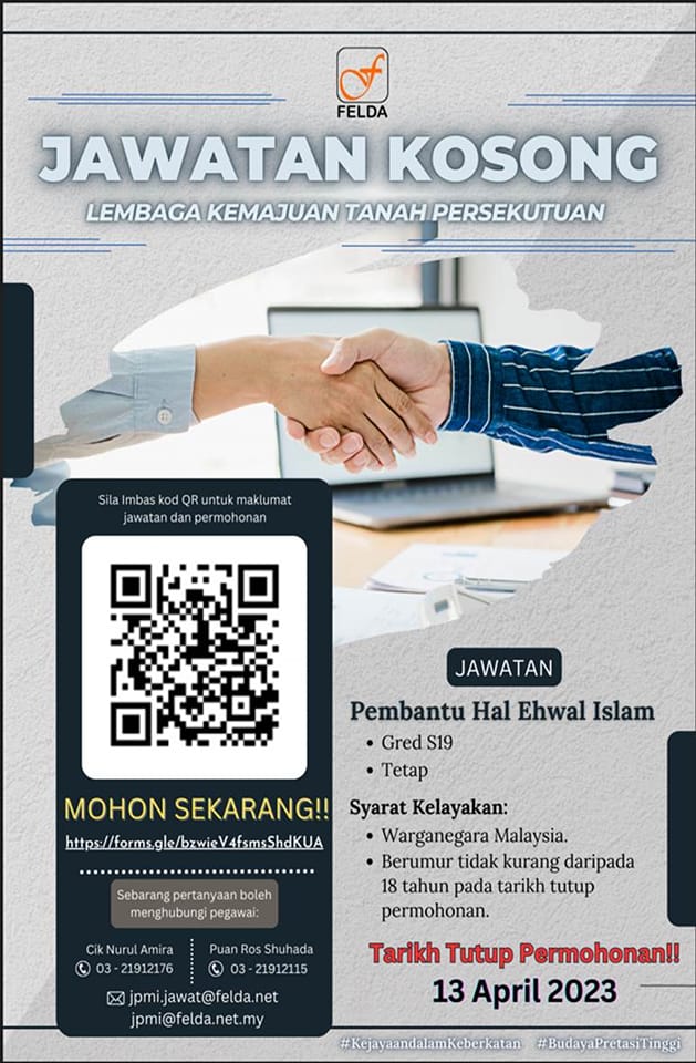 Iklan Jawatan Lembaga Kemajuan Tanah Persekutuan (FELDA) Like serta Ikut Facebook Kami, follow Chanel WhatsApp Jawatan Kosong & Telegram Portal SPA9 untuk capaian pantas kekosongan jawatan daripada kami sekarang.