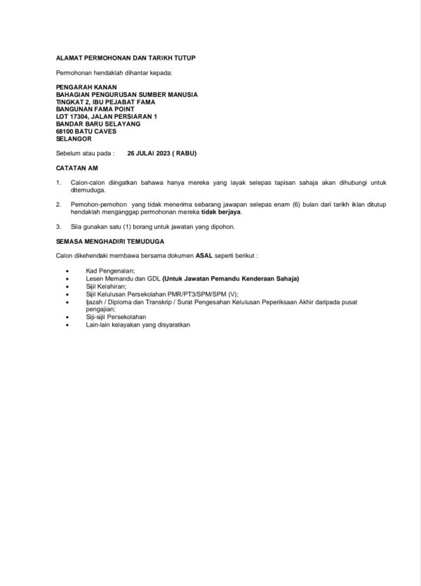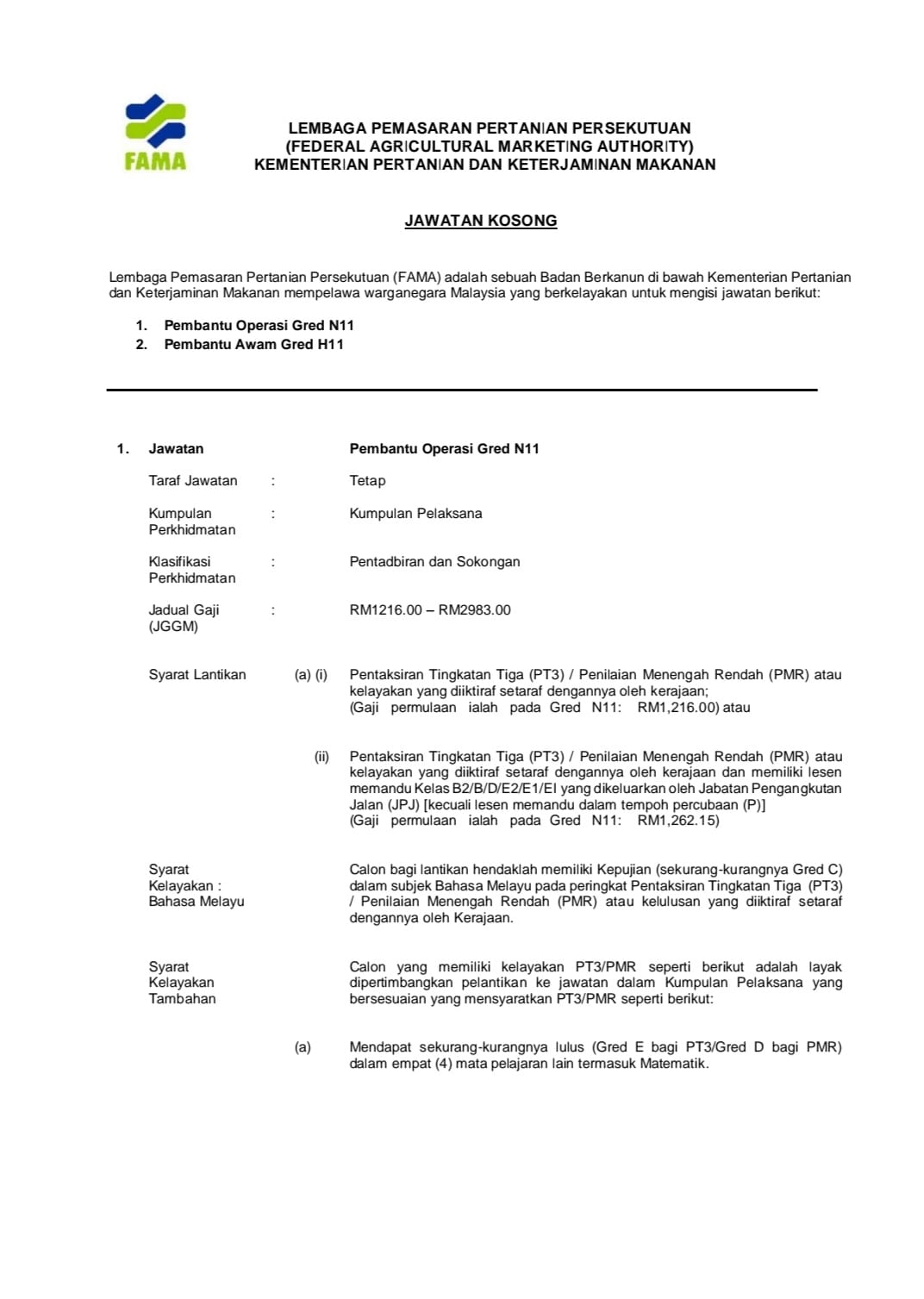 IKlan Jawatan Lembaga Pemasaran Pertanian Persekutuan (FAMA) Like serta Ikut Facebook Kami, follow Chanel WhatsApp Jawatan Kosong & Telegram Portal SPA9 untuk capaian pantas kekosongan jawatan daripada kami sekarang.